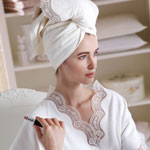 махровый женский короткий халат с кружевом Bamboo, Tivolyo Турция