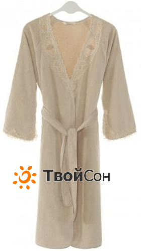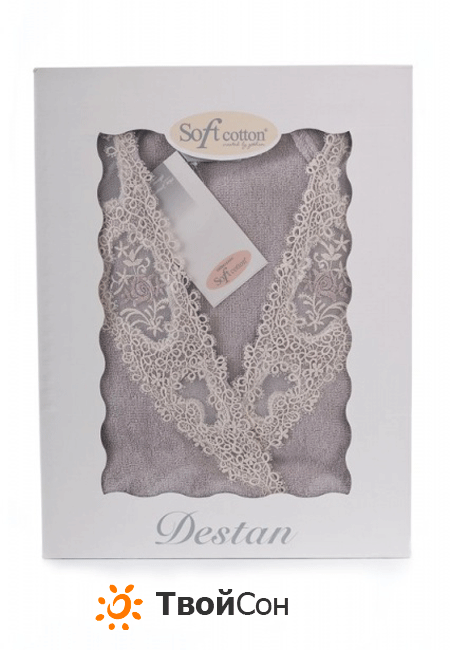 халаты женские: махровый женский длинный халат c кружевами Destan, Турция